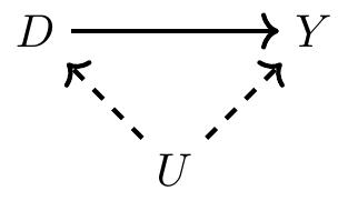 - What if the confounder between \(D\) and \(Y\) is unobserved?