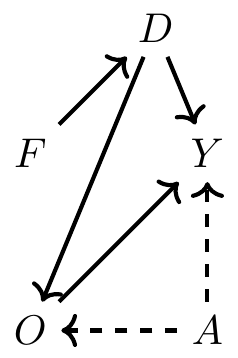 - \(D \rightarrow O \leftarrow A \rightarrow Y\) (discrimination affects occupation, and so does ability, which affects earnings)
