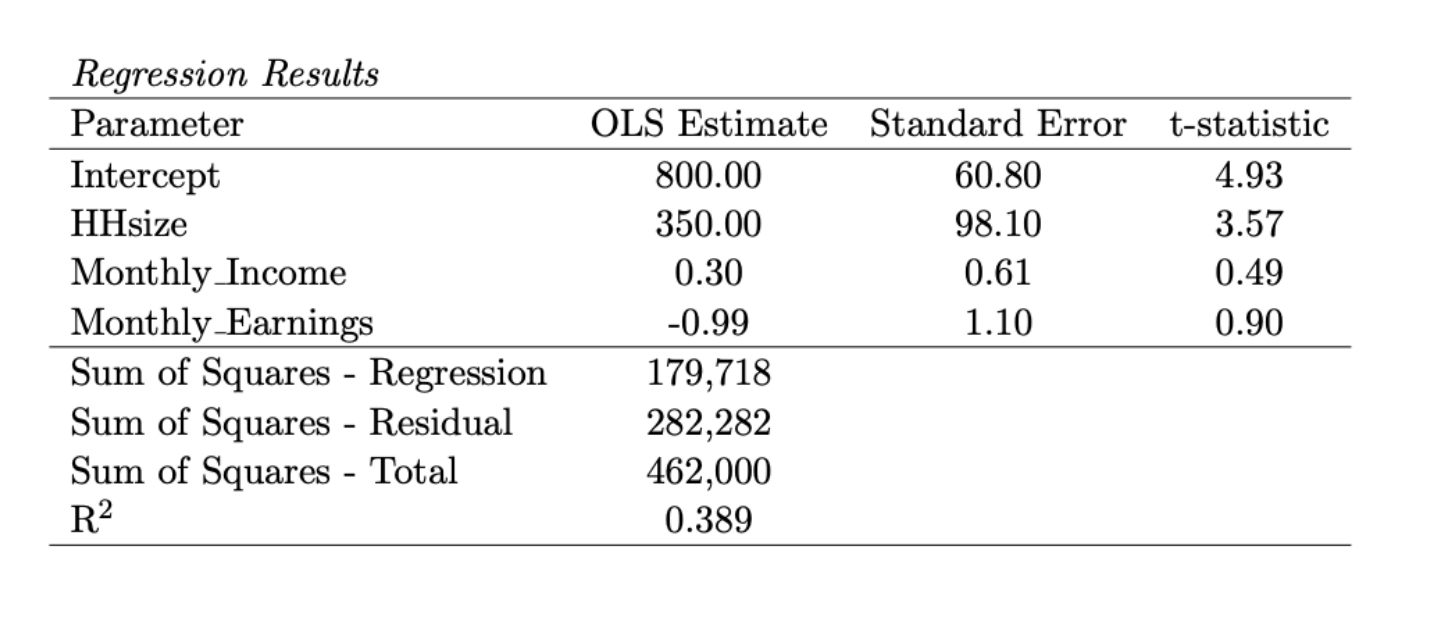 \[ \text{rent} = \beta_0 + \beta_1 \text{hhsize} + \beta_2 \text{monthlyincome} + \beta_3 \text{monthlyearnings} + \varepsilon_i \]