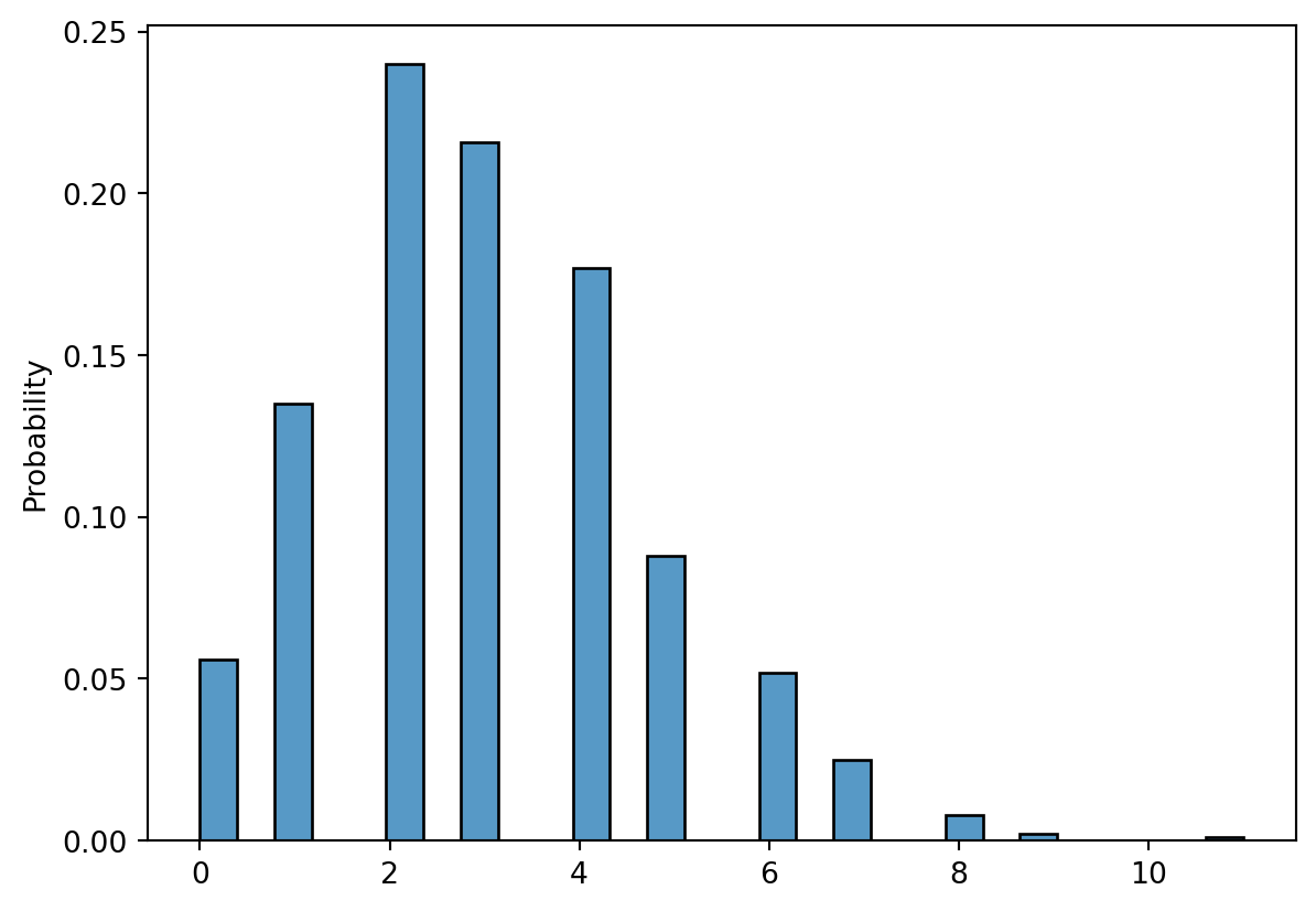 - Discrete probability distributions have a non-zero probability at a particular event (not true for out next lecture)